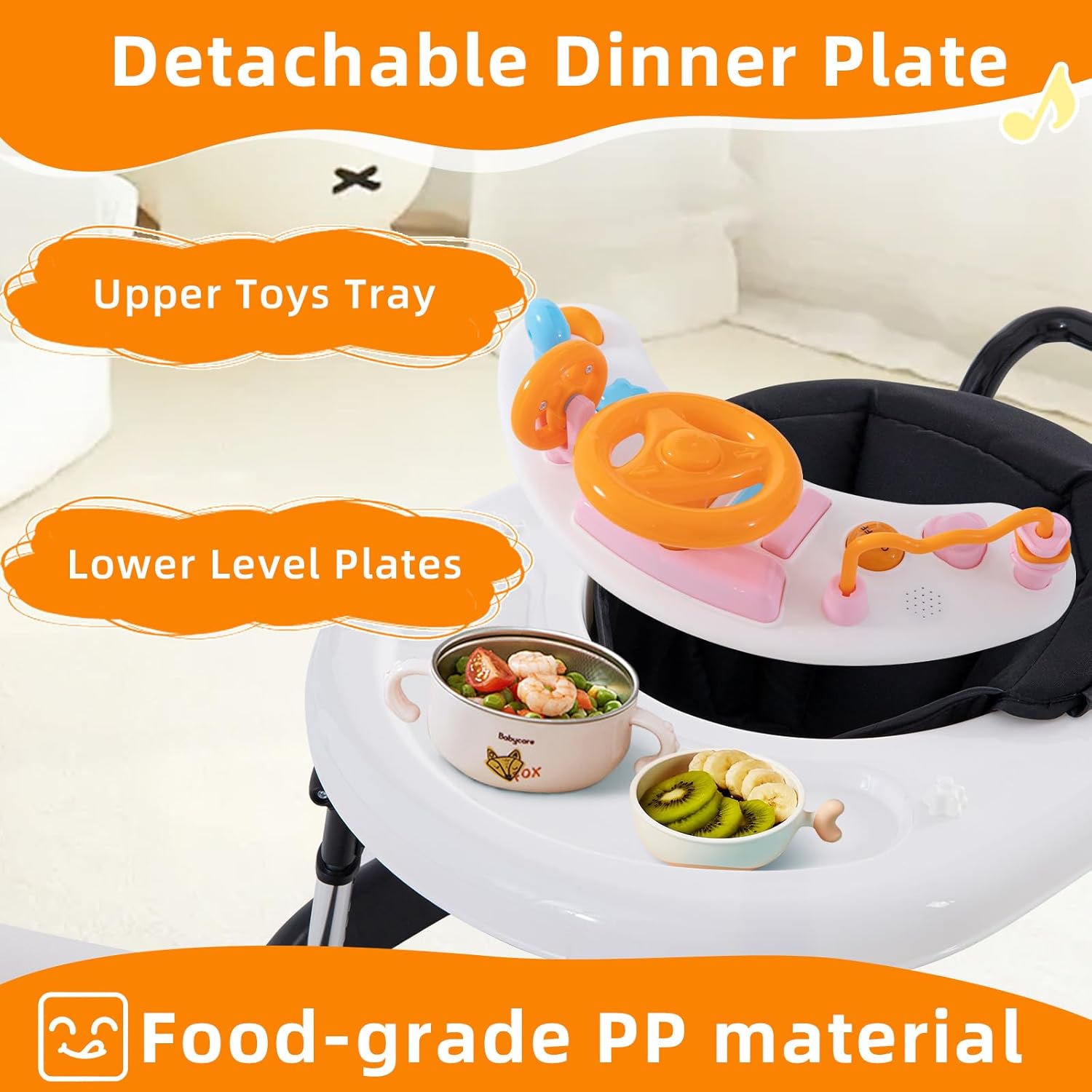 Baby Walker Foldable with Music and Lights,Portable Baby Walker with Wheels,9 Adjustable Heights,Removable Tray&Footrest, Speed Adjustable