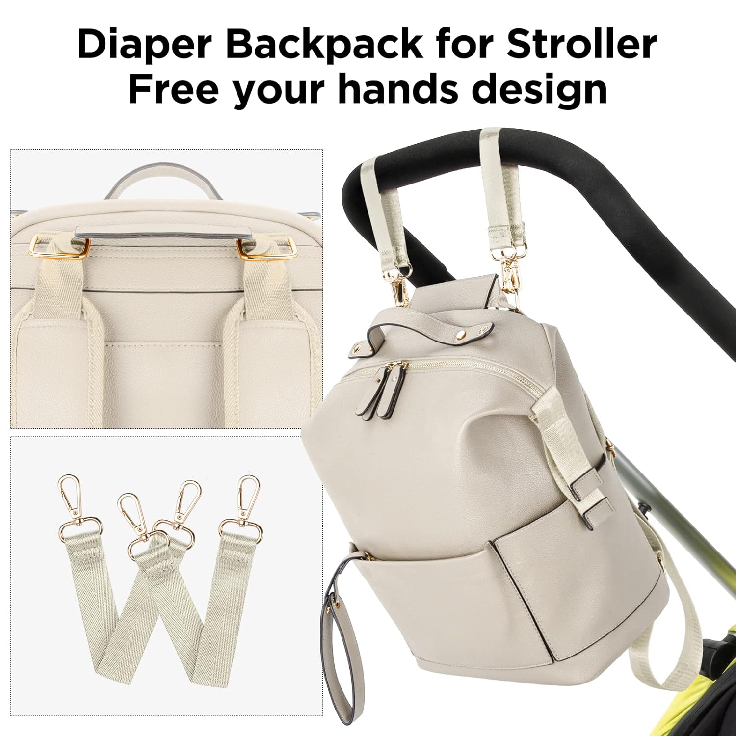 Diaper Bag Backpack, Waterproof Leather Diaper Bags With Changing Station for Baby, Fashion Nappy Travel Backpack for Mom Dad