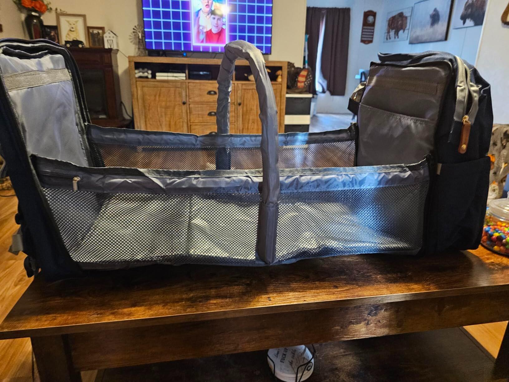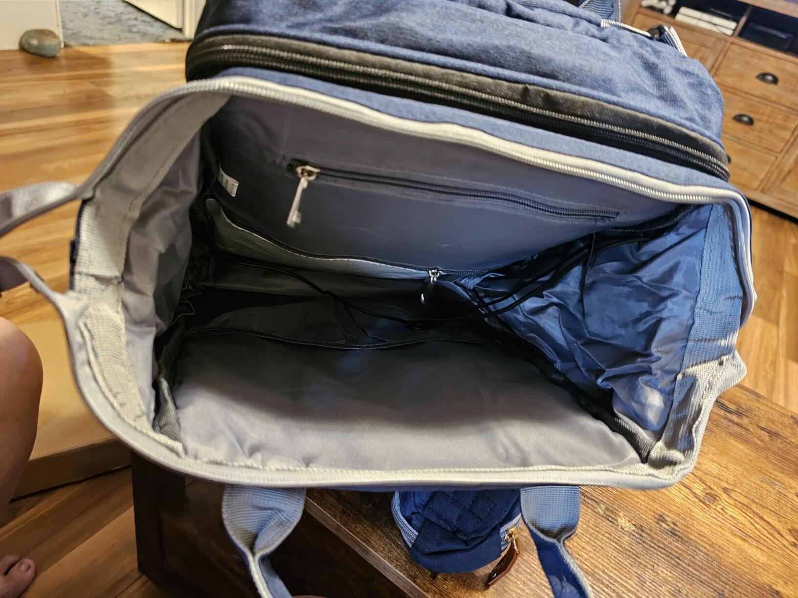 - Includes a mesh diaper organizer, padded laptop sleeve, and quick-access mommy pocket