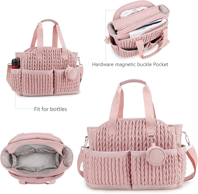 Diaper Tote Quilted Mommy Bag Function Maternity Baby Bag Diaper Changing Messenger with Shoulder Strap Wet Pocket