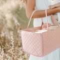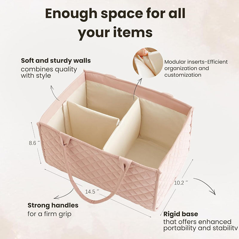 Stay perfectly organized in style with our premium diaper bag tote! Designed for modern parents on the go, this sophisticated pink tote features modular inserts for customizable organization, sturdy handles for comfortable carrying, and a rigid base for superior stability. Combining elegant quilted design with practical functionality, this bag makes parenting look effortlessly chic.